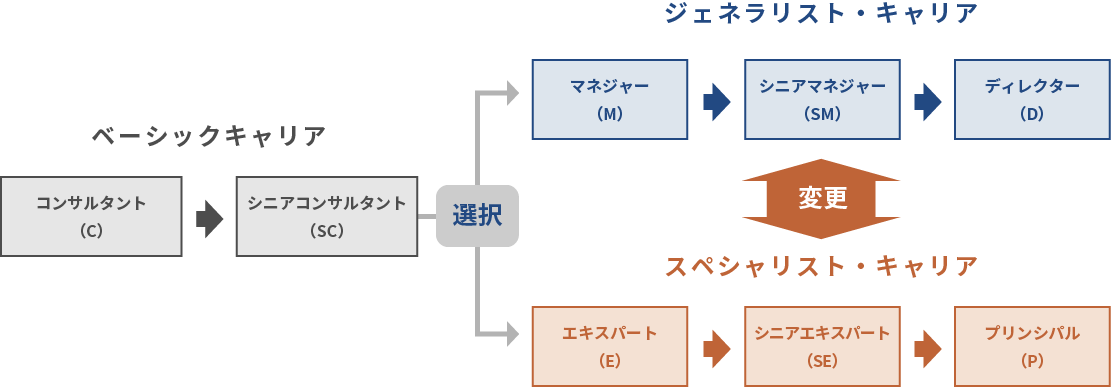 シニアコンサルタントとして実績を積み、マネジャーとしてスタッフ及びプロジェクトを管理することができると判断した場合に昇格します。