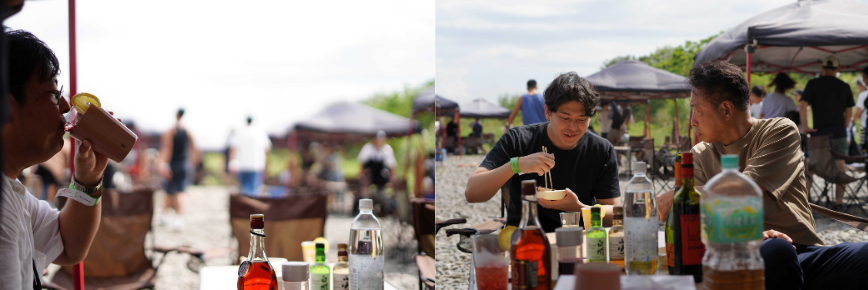 日差しはまだ強かったですが、食事中はテントの日陰に居たこともあり、秋口の気持ち良い気温の中で快適に過ごすことができました。